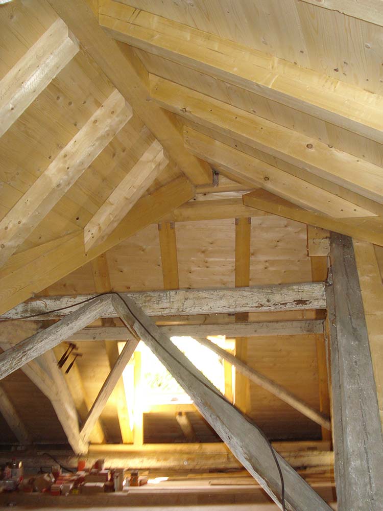 Sanierung und Rekonstruktion historischer Fachwerke, Dachstühle und Balkendecken – mit traditionellen Techniken, originalgetreuen Materialien und handwerklicher Präzision.