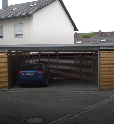 Carport mit Fahrrad- abstellplatz in Düsseldorf.