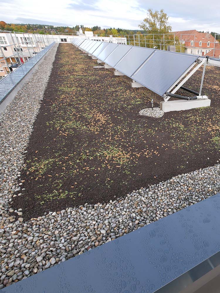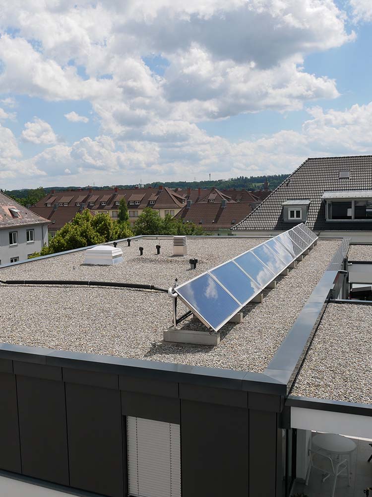 Die Fläche eines Flachdachs ist ideal für die einfache und effiziente Installation von Solarmodulen. Auch bietet sie zusätzlichen Platz für vielfältige Nutzungsmöglichkeiten. Als Spezialist für Flachdächer integrieren wir diese Systeme nahtlos in die Dachkonstruktion.