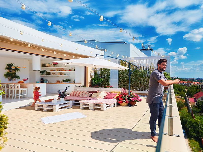 Ein Flachdach schafft eine wertvolle zusätzliche Fläche, die als Dachterrasse, Dachgarten oder als Grünfläche genutzt werden kann. Dies ist besonders in städtischen Gebieten oder auf kleineren Grundstücken von Vorteil.