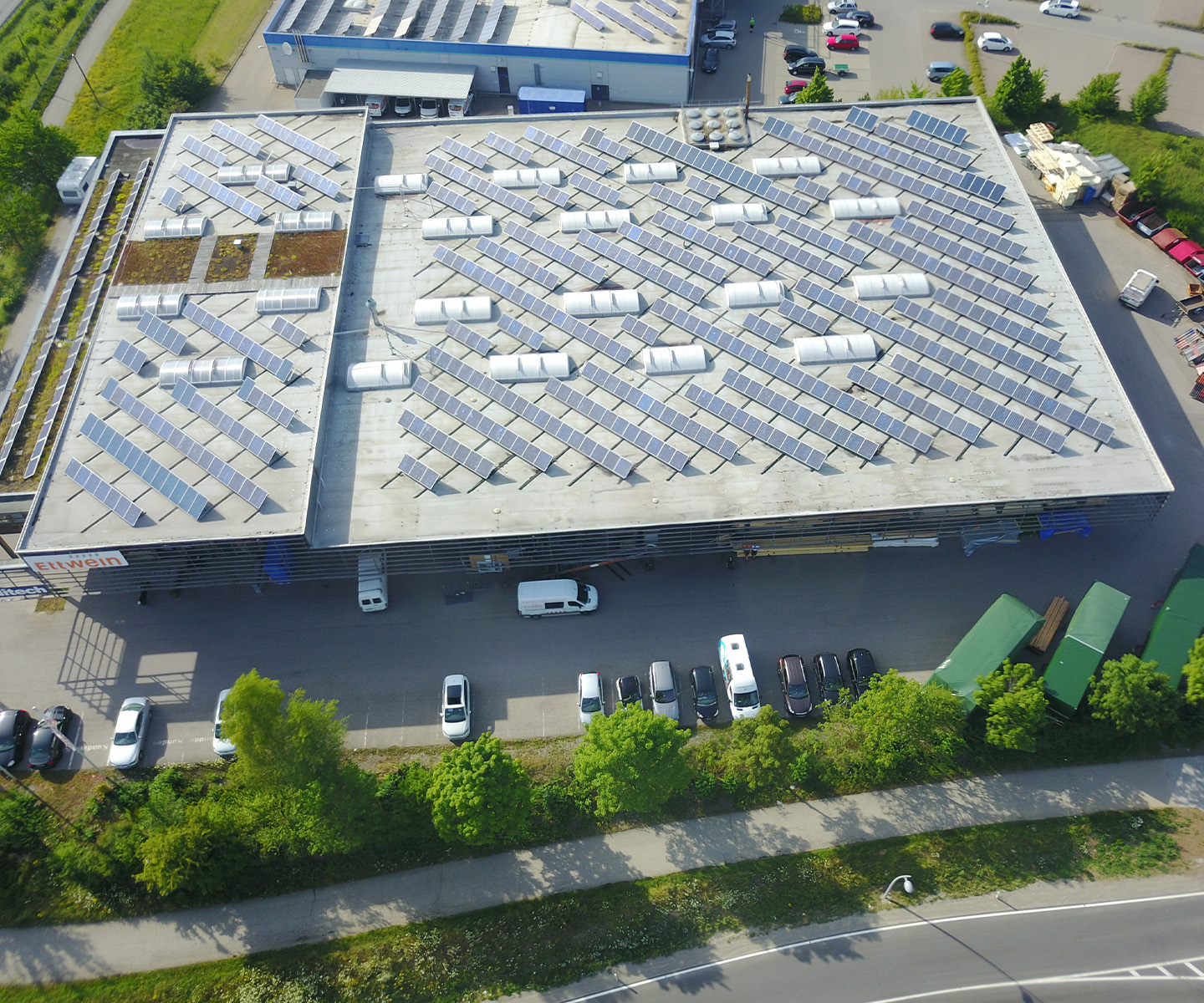 Weil wir an eine lebenswerte Zukunft glauben, haben wir unseren Firmensitz als ökologisches Vorzeigeprojekt gebaut: mit Sonnenstrom vom Dach, Wärme aus Restholz, Regenwasser für Pflanzen und Toiletten, smarter LED-Beleuchtung und jeder Menge gebundenem CO₂ im Holz.
